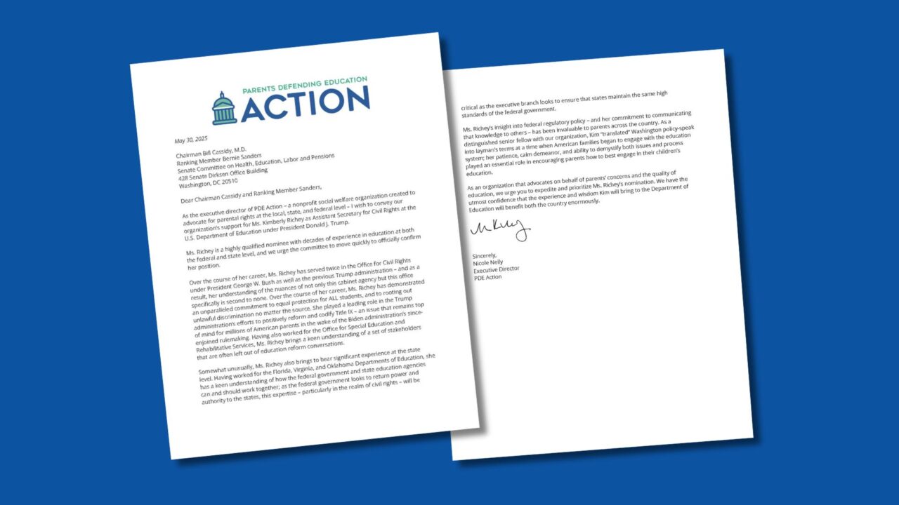 As the executive director of PDE Action – a nonprofit social welfare organization created to advocate for parental rights at the local, state, and federal level – I wish to convey our organization’s support for Ms. Kimberly Richey as Assistant Secretary for Civil Rights at the U.S. Department of Education under President Donald J. Trump.